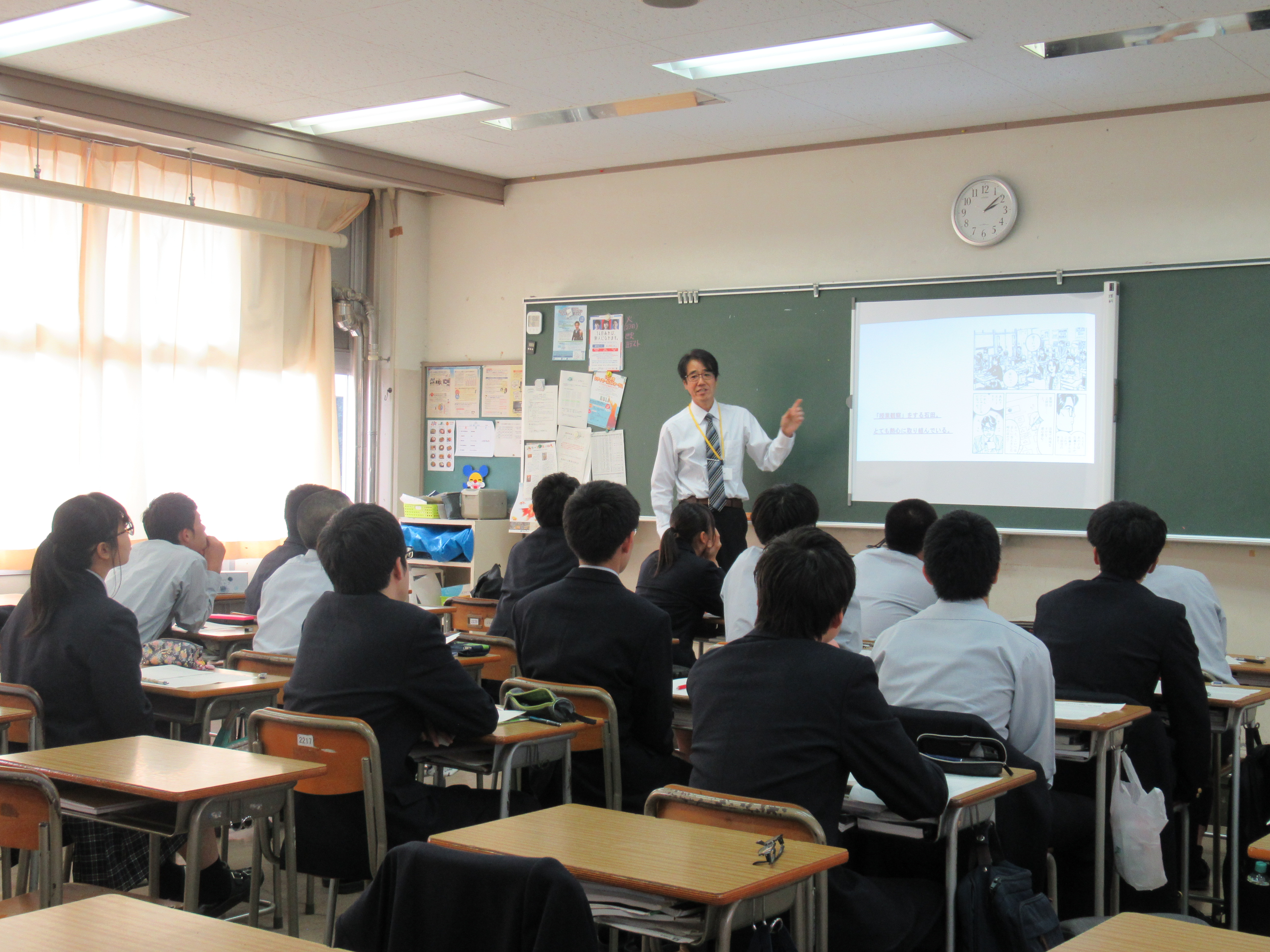 校長先生のお話と生徒会長の話に続いて、スライドショーの上映、生徒会主任の先生の話があり、