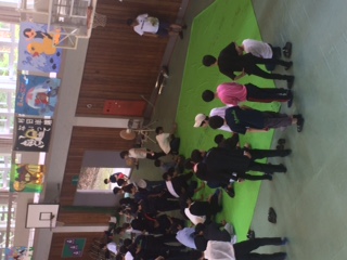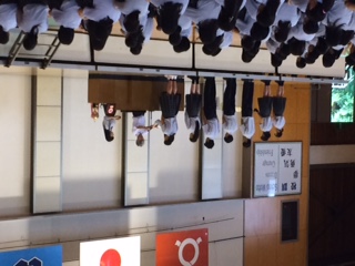 今日の午前中は開祭式に続いて、各クラスの校内発表がありました。