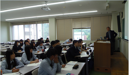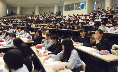 「大学での模擬授業の受講を通して学問の意義を認識し、学びへの探究心を高めるとともに、大学生活の一端を体験することで大学進学へのさらなる意識高揚をはかる」という目的で、いわき明星大学において実際に大学での模擬授業を受け、職業観育成講話を聴いてきました。