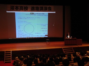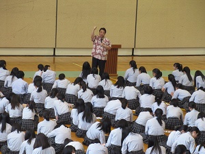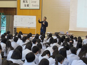 〇講演で一番印象に残ったのは、「一日に誰と一番コミュニケーションをとっているか」という質問に対する答えが「自分」ということでした。ネガティブな言葉を言うと、まず自分の耳に入り行動に影響する。ポジティブな言葉を口に出すと、行動を活発にすることもできる。普段何気なく使う言葉を少し意識するだけで、自分の進む道を明るくできることが分かりました。(3年女子)