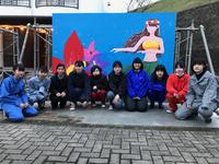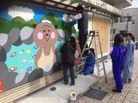 本校の美術部と書道部が湯本駅前の市営住宅天王崎団地敷地内のシャッターに
