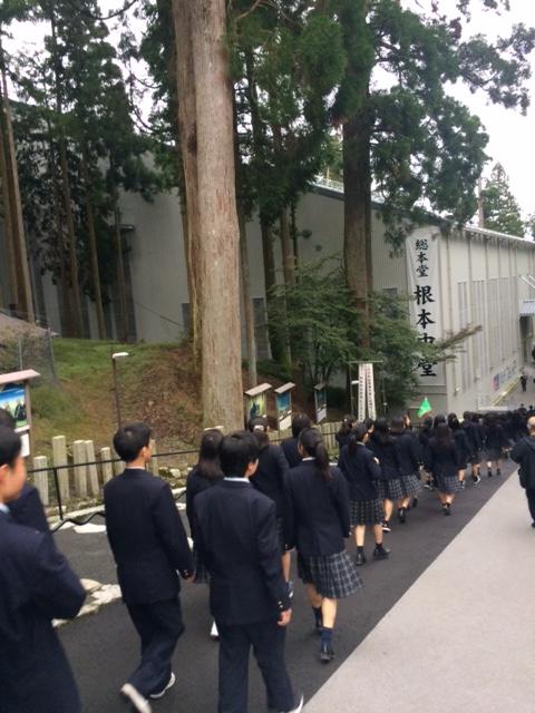 修学旅行2日目は快晴です。体調を崩している生徒はいません。これから京都市内の班別研修に出発します。