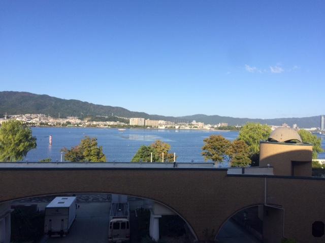 ホテルの部屋の窓から(目の前は琵琶湖です。)