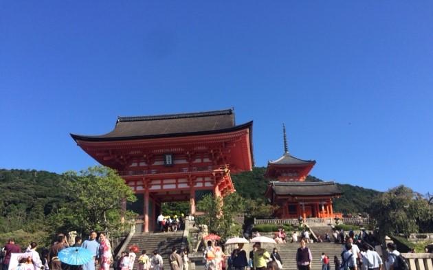 集合場所の清水寺です。最高の秋の空です。