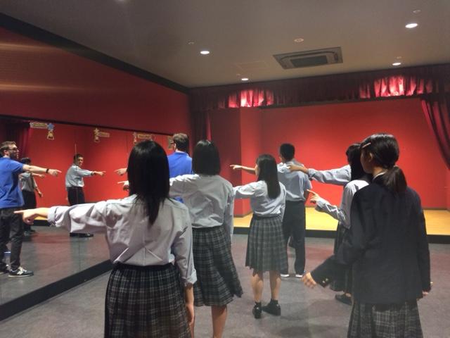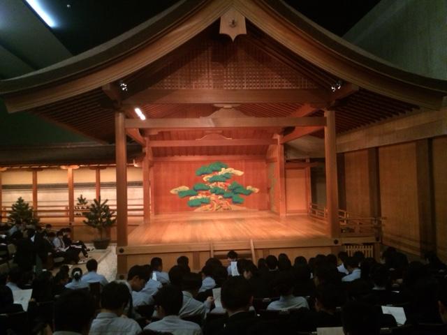 各クラスの代表が謡や笛、鼓、能の動きを体験したあと、プロの能楽師による能を観劇しました。