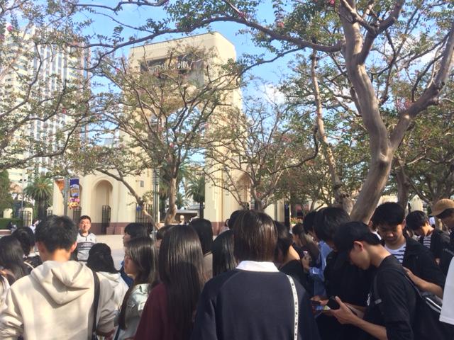 全ての生徒が、京都市内班別研修のチェックポイント、清水寺の見学を終え集合しました。これから能楽鑑賞です。