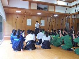 道具の名称と基本的な動作から始まり、手の内の練習、矢の番え方など。