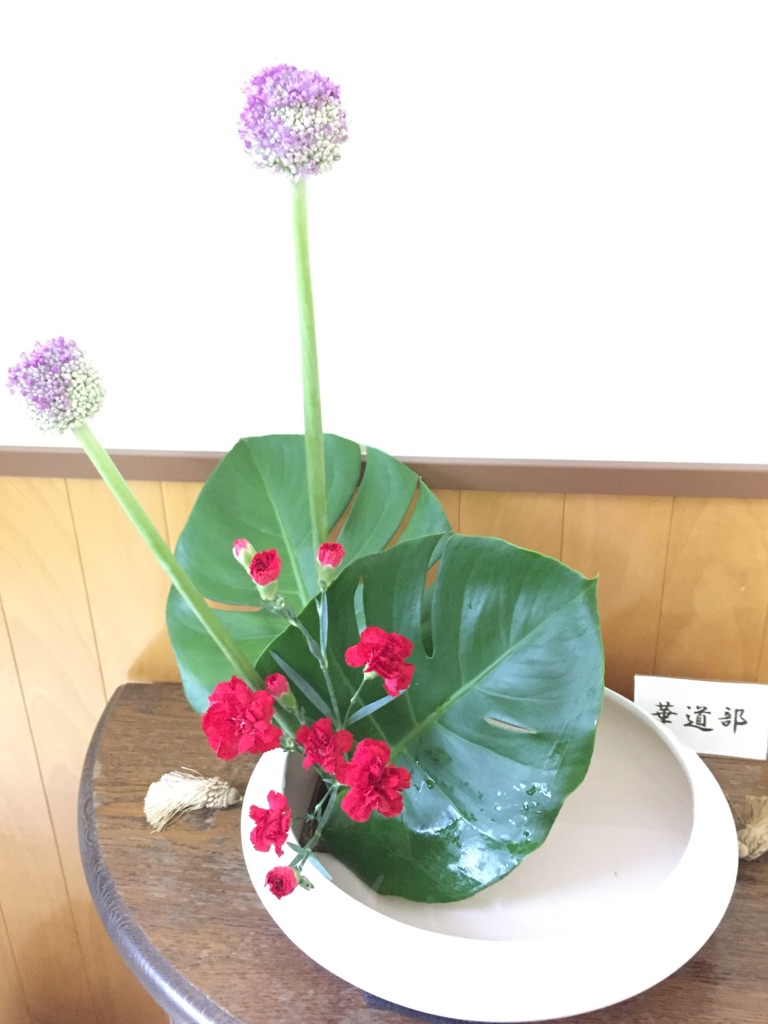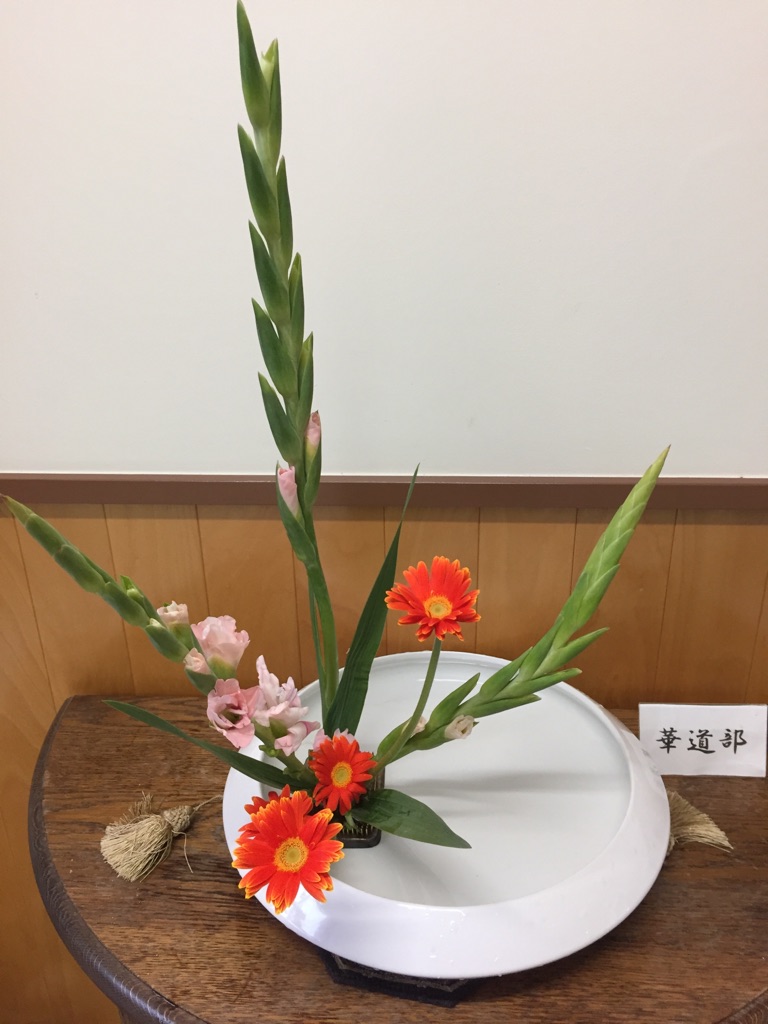 花材:グラジオラス、ガーベラ(オレンジケーキ)